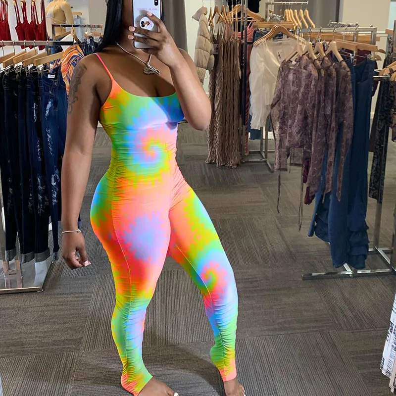 Tie Dye Printed Jumpsuit Woman Summer 2020 Sexy Skinny Fitness Spaghetti Strap Backless Stacked Pants Leggings Bodycon Rompers Aliexpress